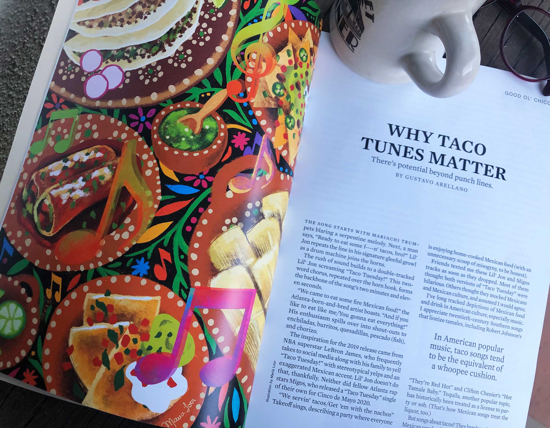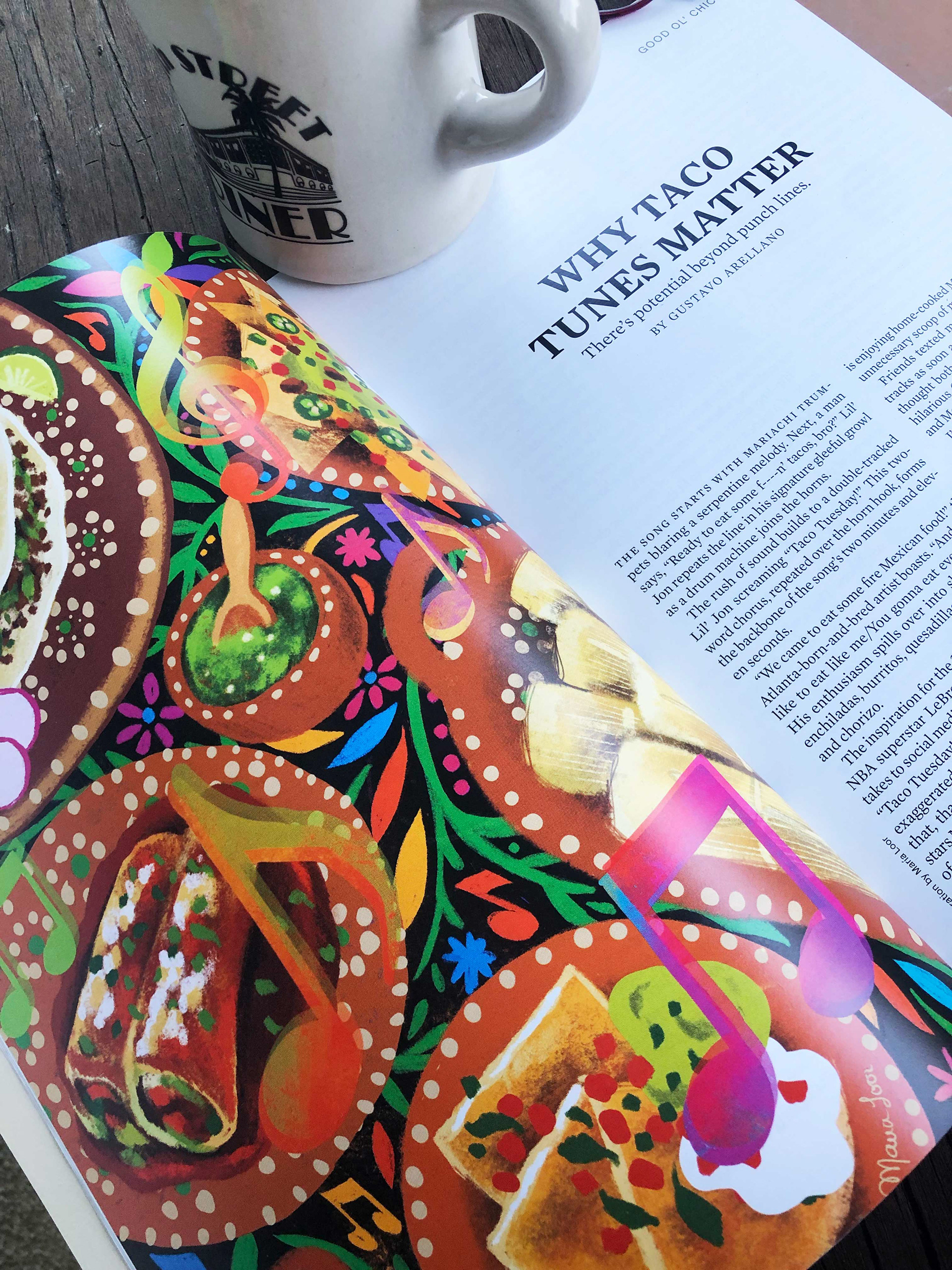 Editorial Illustration for "Why Taco Tunes Matter" , published in the Spring edition of Gravy Journal by Southern Foodways Alliance