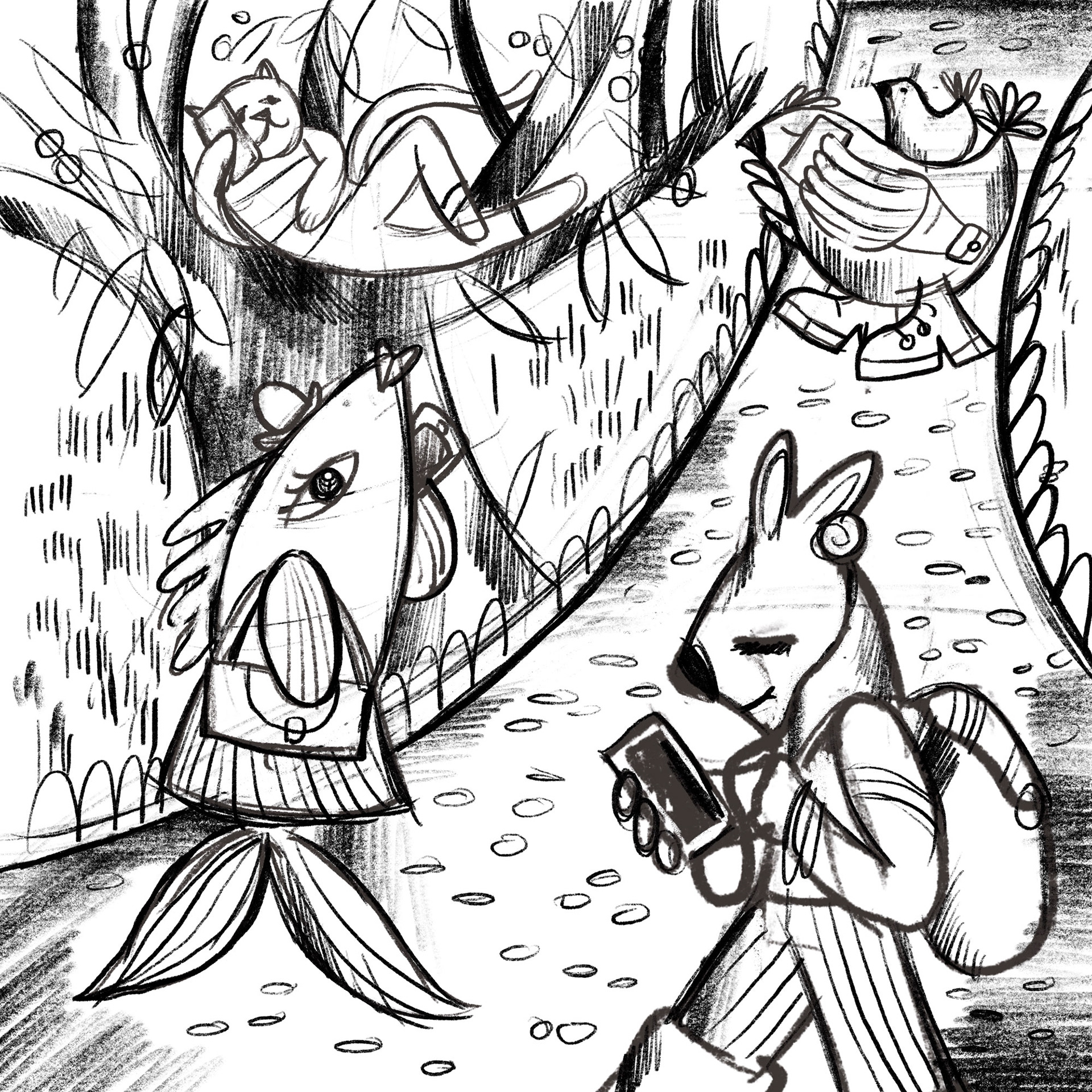 Exlploratory drawings about wild animals and the city life.